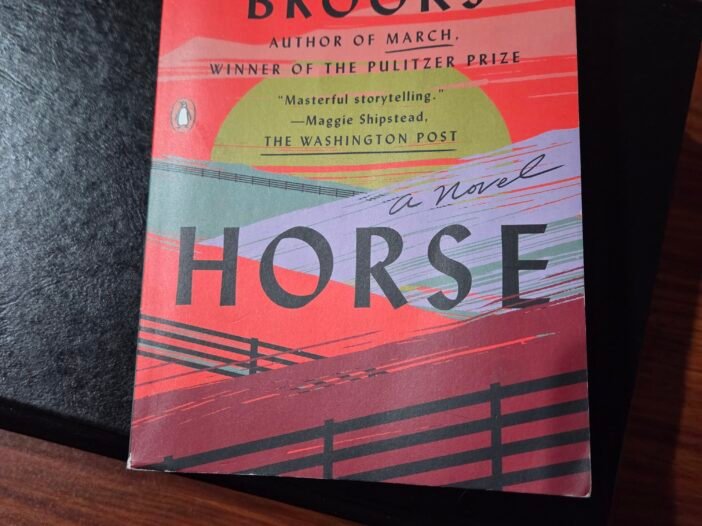 Brooks also brings the story into the present through Jess and Theo, a bone archeologist and an art historian. Jess has helped re-discover Lexington’s bones stored away in a museum, and Theo acquires a painting of Lexington from a neighbor’s trash bin. As Jess and Theo begin to realize the importance of the horse, the bones and the painting become central to the story as evidence of Lexington’s timeless greatness. Jess, who is white, and Theo, who is black, form a complicated bond.
